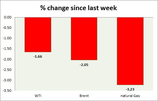 Energy pack is down in today’s trading. Weekly performance at a glance in chart & table.