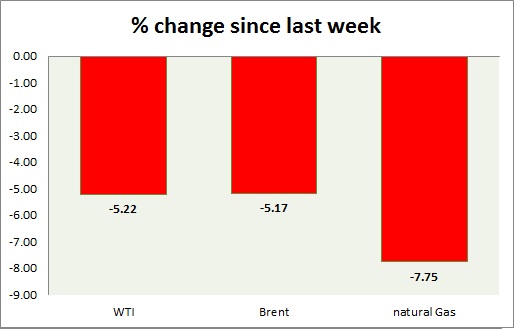 - WTI declined more than 2 percent this week. Sharply down for the week so far. Today’s range $46.7-48.2