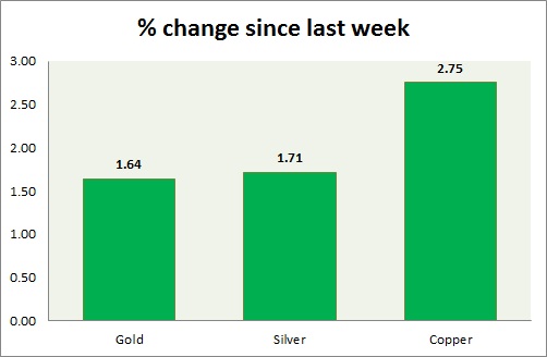 Metal pack is mixed today. Performance this week at a glance in chart & table -