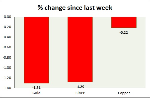 Metal pack is in red in today's trading. Performance this week at a glance in chart & table -
