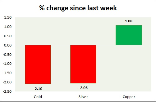 Metal pack is mixed, while precious pack is down, industrial is trading in green. Performance this week at a glance in chart & table -
