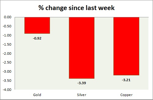 Metal pack is sharply down today. Performance this week at a glance in chart & table -