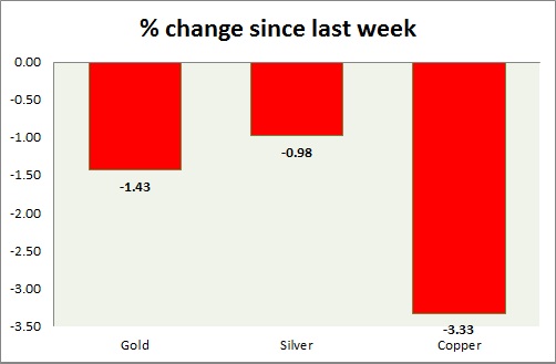 Metal pack is down, in today's trading. Performance this week at a glance in chart & table -