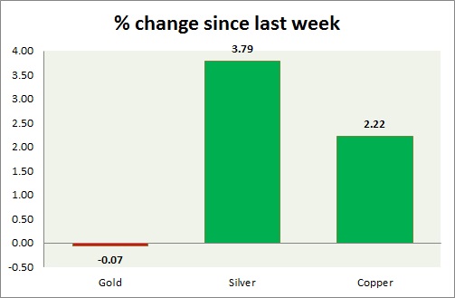 The metal pack is mixed today. The performance this week at a glance in chart & table -