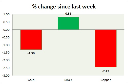 Metal pack is down today. Performance this week at a glance in chart & table -