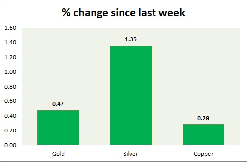 Metal pack is down today. Performance this week at a glance in chart & table -