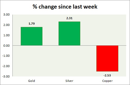 Metal pack is mixed today, precious is up while industrial is down. Performance this week at a glance in chart & table -