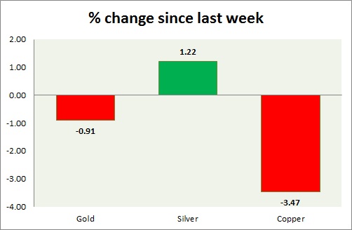 Metal pack is mixed today. Performance this week at a glance in chart & table -