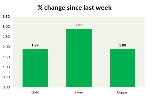 Metal pack is sharply up today. Performance this week at a glance in chart & table -
