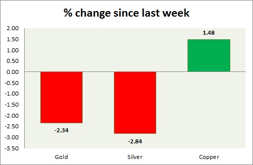 Metal pack is mixed today. Performance this week at a glance in chart & table -