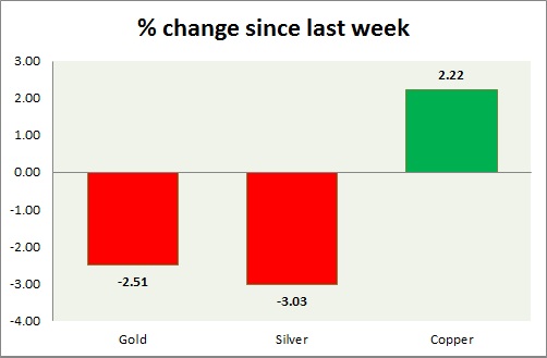 Metal pack is mixed today. Performance this week at a glance in chart & table -