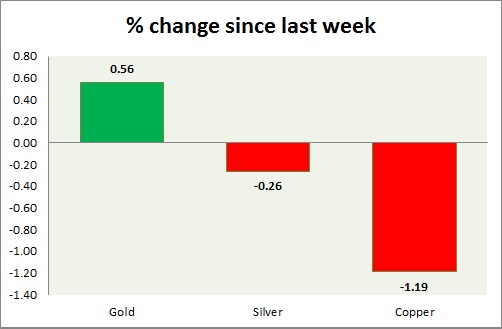 Metal pack is down today. Performance this week at a glance in chart & table -