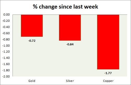 Metal pack is mixed today. Performance this week at a glance in chart & table -