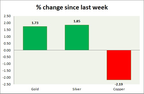 Metal pack is green today. Performance this week at a glance in chart & table -