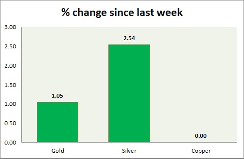 Metal pack is up today. Performance this week at a glance in chart & table -