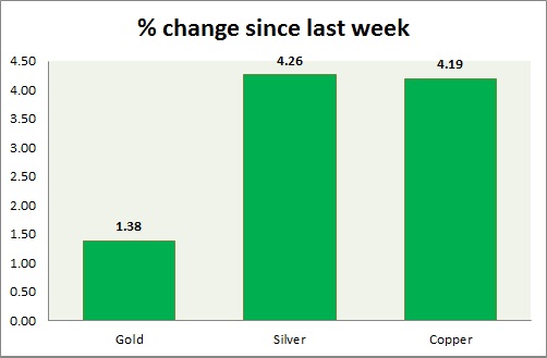 Metal pack is up today. Performance this week at a glance in chart & table -