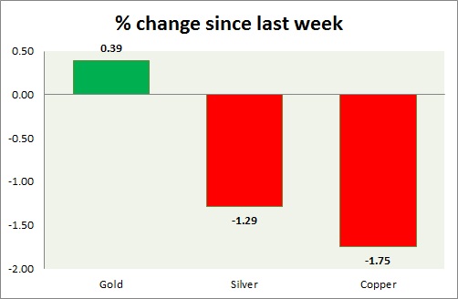Metal pack is mixed today. Performance this week at a glance in chart & table -