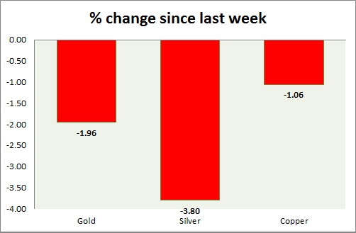 Metal pack is down today. Performance this week at a glance in chart & table -