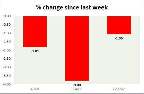 Metal pack is down today. Performance this week at a glance in chart & table -