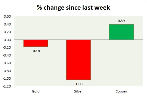 Metal pack is down today. Performance this week at a glance in chart & table -