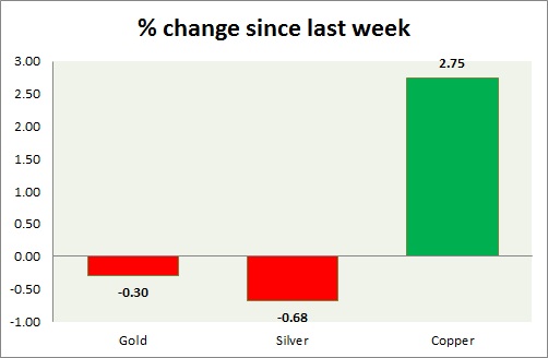 Metal pack is mixed today. Performance this week at a glance in chart & table -