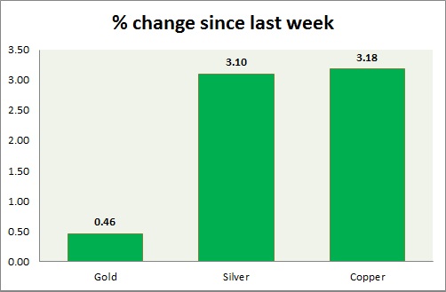 Metal pack is mixed today. Performance this week at a glance in chart & table -