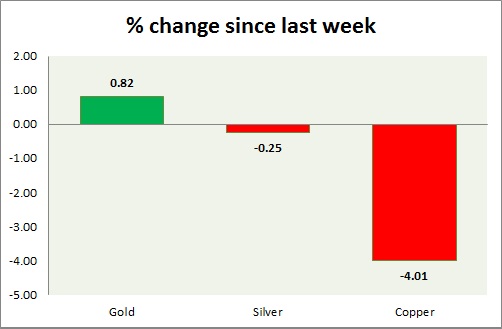 Metal pack is mixed today. Performance this week at a glance in chart & table -