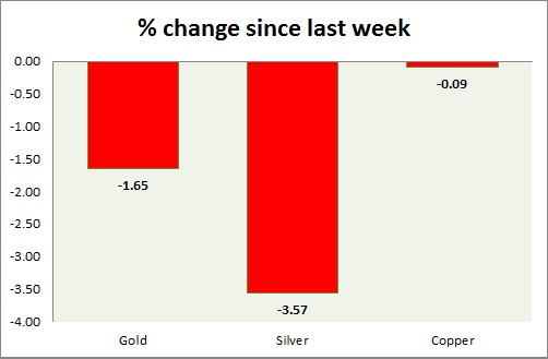 Metal pack is down today. Performance this week at a glance in chart & table -