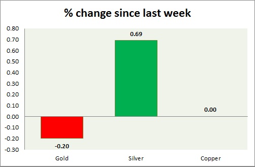 Metal pack is mixed today. Performance this week at a glance in chart & table -