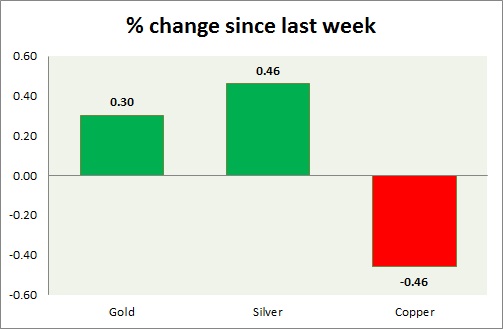Metal pack is mixed today. Performance this week at a glance in chart & table -