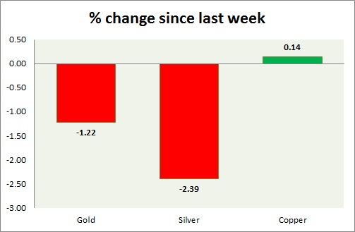 Metal pack is mixed today. Performance this week at a glance in chart & table -