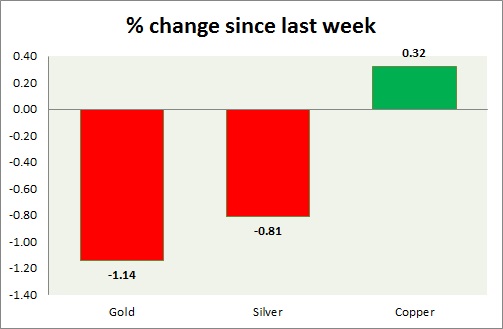 Metal pack is mixed today. Performance this week at a glance in chart & table -