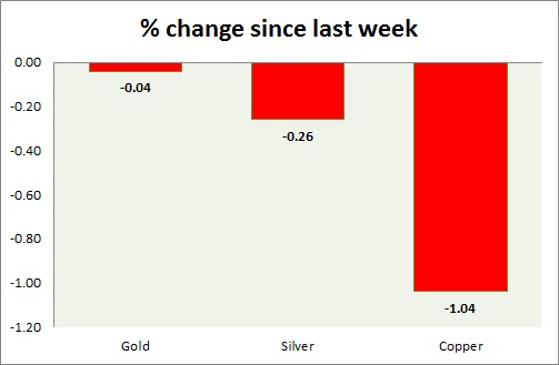 Metal pack is down today. Performance this week at a glance in chart & table -