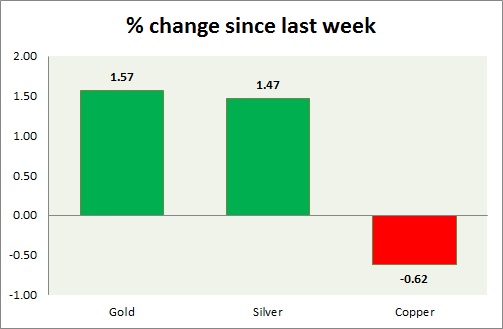 Metal pack is up today. Performance this week at a glance in chart & table -