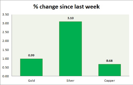 Metal pack is up today. Performance this week at a glance in chart & table -