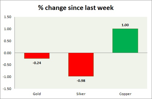 Metal pack is down today. Performance this week at a glance in chart & table -