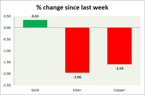 Metal pack is mixed today. Performance this week at a glance in chart & table -