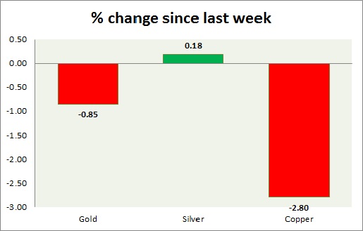 Metal pack is down today. Performance this week at a glance in chart & table -