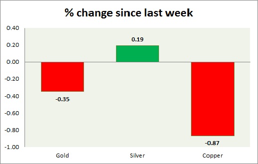 Metal pack is mixed today. Performance this week at a glance in chart & table -