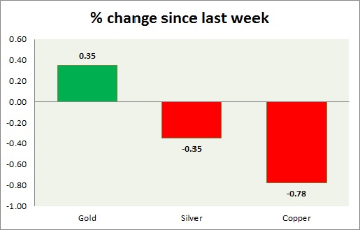Metal pack is mixed today. Performance this week at a glance in chart & table -