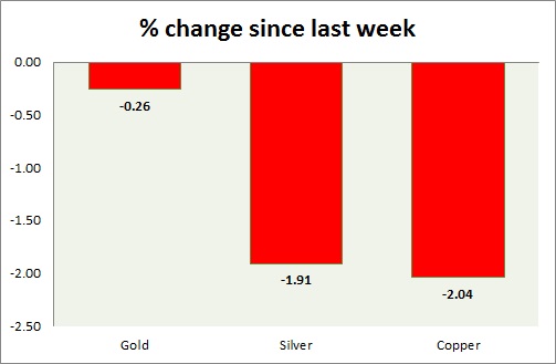 Metal pack is mixed today. Performance this week at a glance in chart & table -