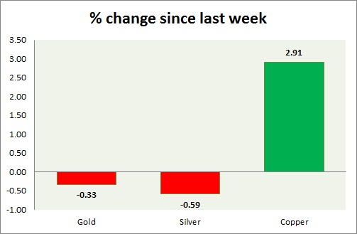 Metal pack is down today. Performance this week at a glance in chart & table -