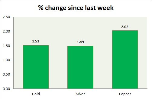 Metal pack is up today. Performance this week at a glance in chart & table -