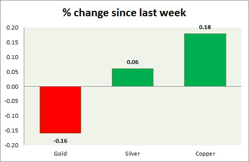 Metal pack is mixed today. Performance this week at a glance in chart & table -