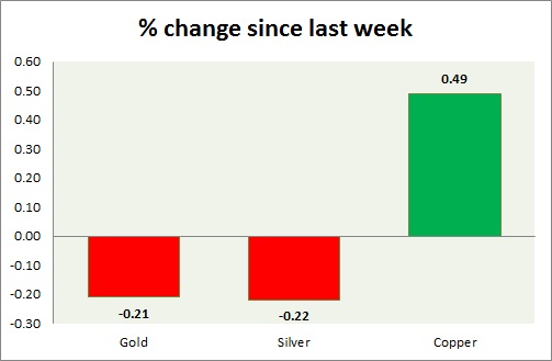 Metal pack is up today. Performance this week at a glance in chart & table -