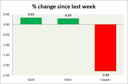 Metal pack is mixed today. Performance this week at a glance in chart & table -