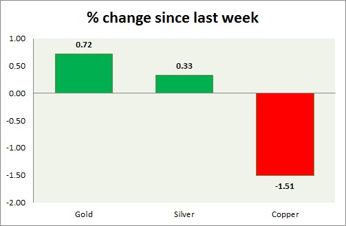 Metal pack is mixed today. Performance this week at a glance in chart & table -
