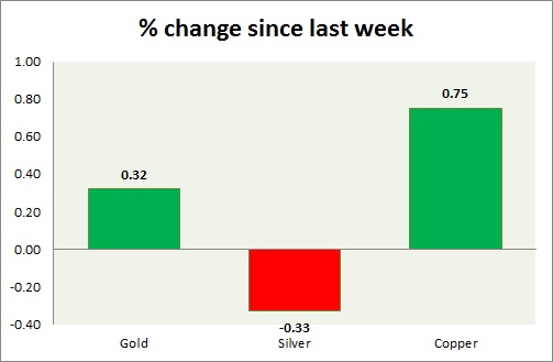The metal pack is down today. Performance this week at a glance in chart & table -