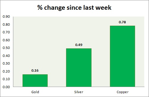 The metal pack is up today. Performance this week at a glance in chart & table -