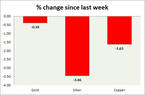 The metal pack is mixed today. Performance this week at a glance in chart & table -
